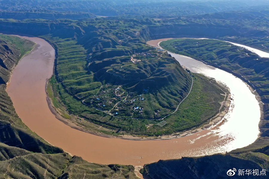 這是2019年8月28日拍攝的山西省永和縣閣底鄉境內黃河乾坤灣(無人機照片)。新華社記者 曹陽 攝
