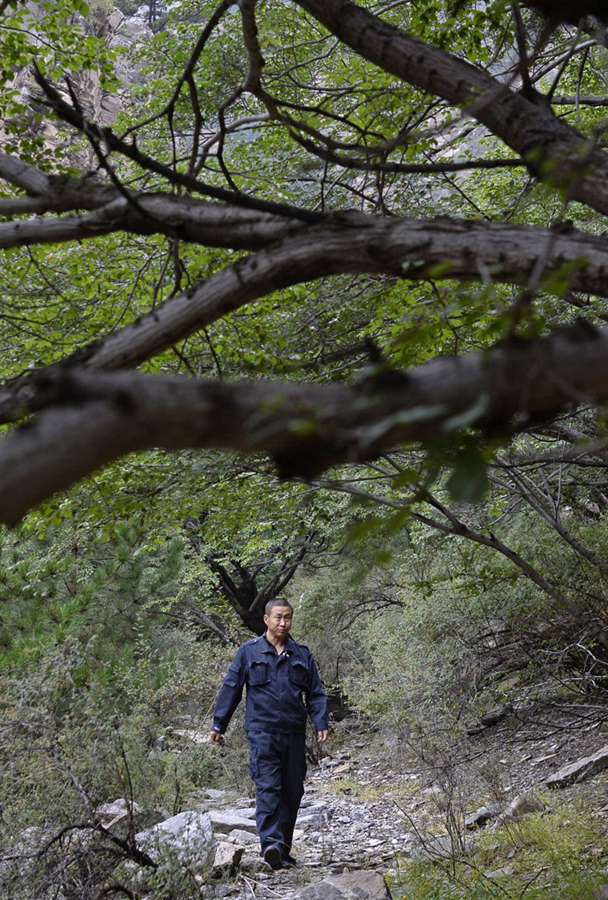 寧夏賀蘭山護林員孫國亮在護林區巡山(新華社記者王鵬 攝)