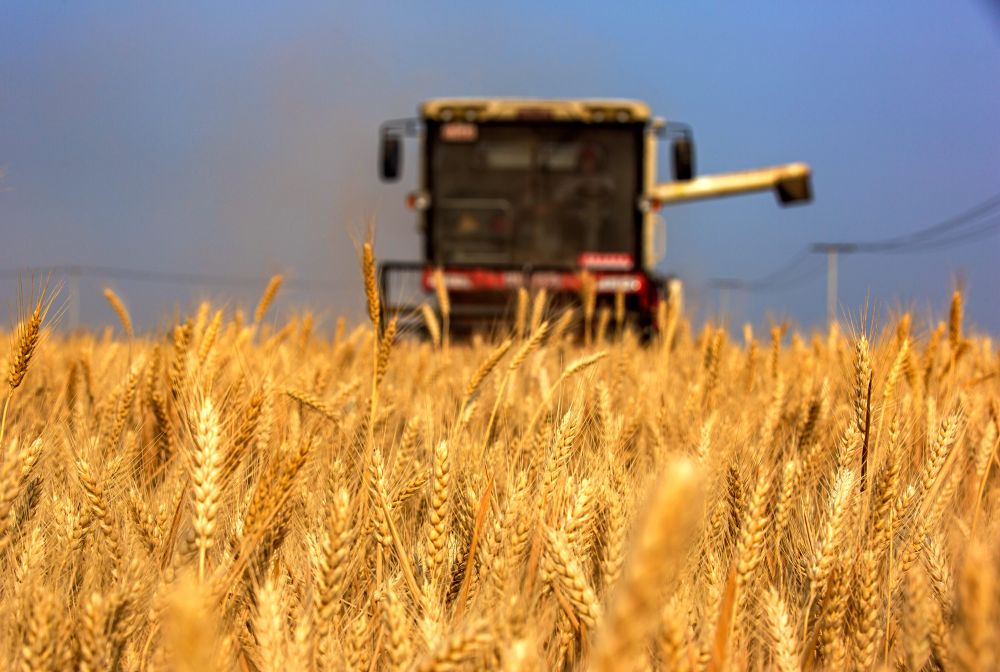 2020年6月10日,在河北省武安市大同鎮(zhèn)馬會村,農(nóng)機手操作機械設(shè)備收割小麥。新華社記者 王曉 攝