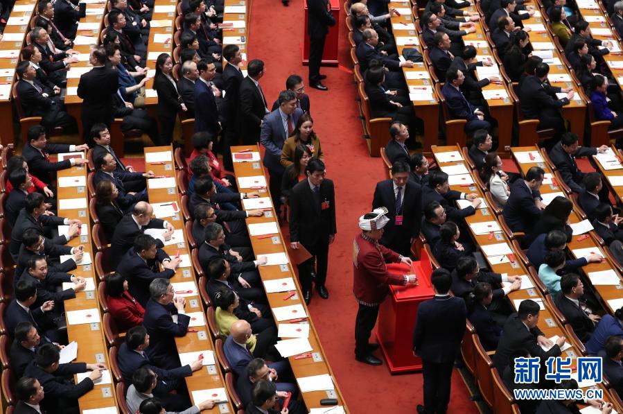 2018年3月11日,十三屆全國人大一次會(huì)議在北京人民大會(huì)堂舉行第三次全體會(huì)議,表決中華人民共和國憲法修正案草案。新華社記者 丁海濤 攝