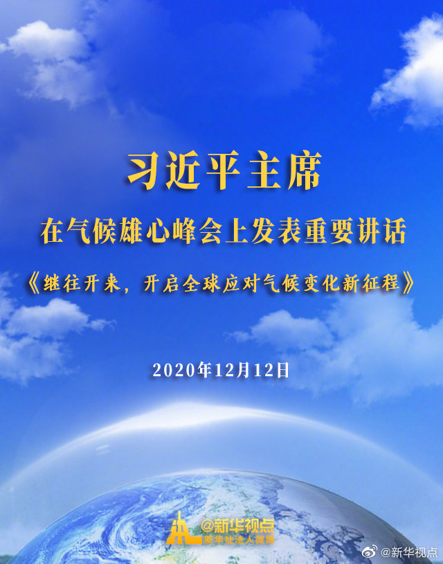 12月12日,國家主席習近平在氣候雄心峰會上發表重要講話。