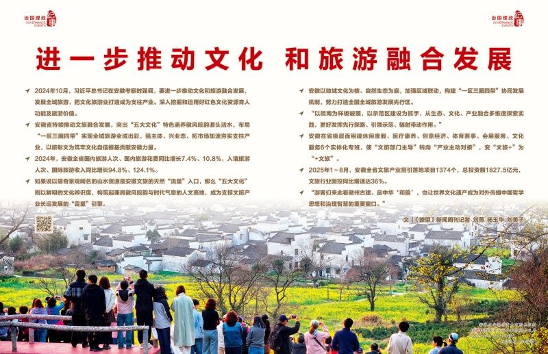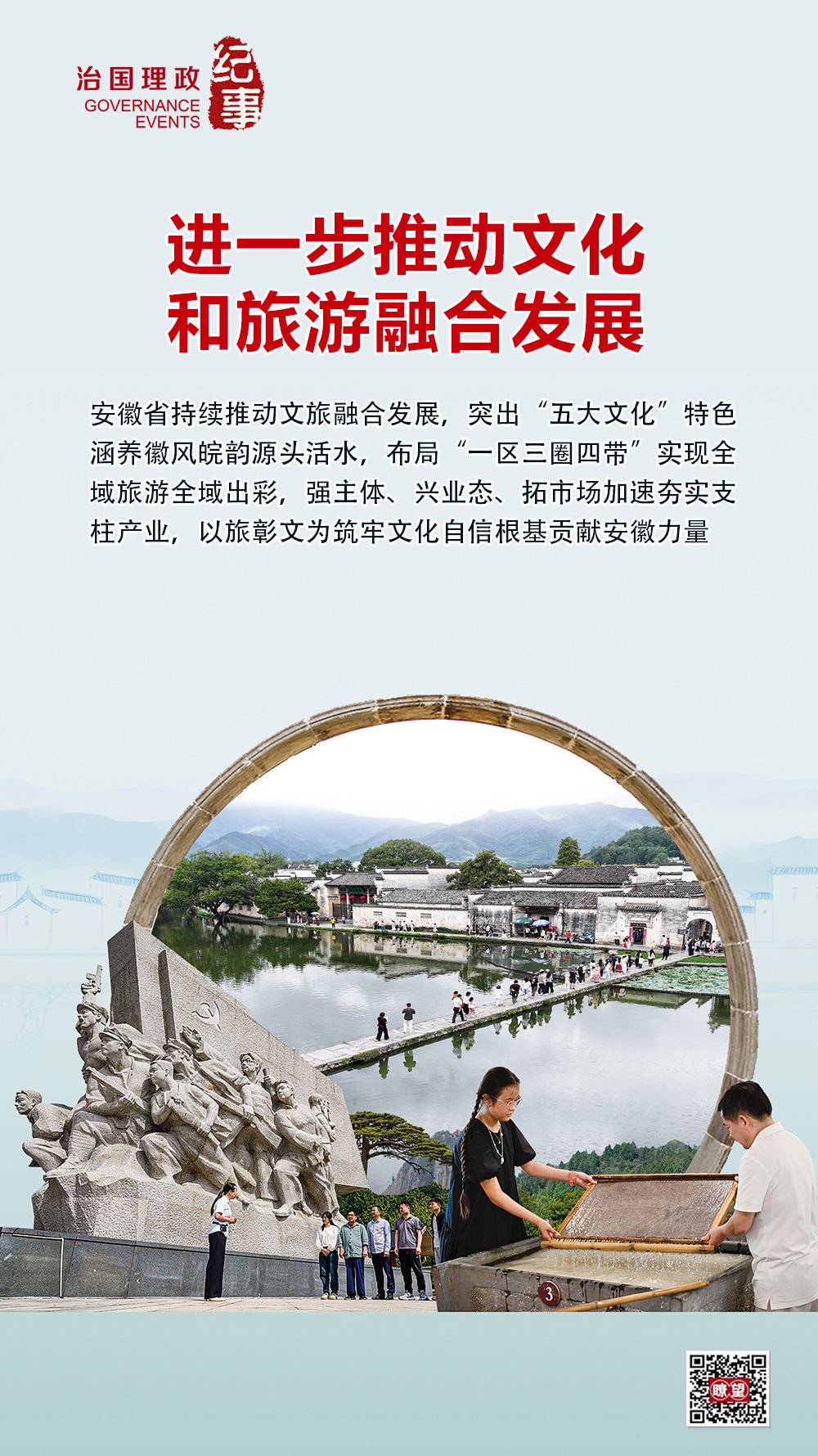 见出以知入,观往以知来。安徽充分发挥旅游的载体作用,将社会主义先进文化、革命文化、中华优秀传统文化融入文旅线路设计、展陈展示、讲解体验,以文塑旅、以旅彰文,以文化人、以文润城,引导人们增强文化认同、传承善治之道、筑牢精神家园。