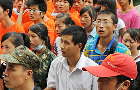 80后、90后大學生志愿者災區(qū)集結