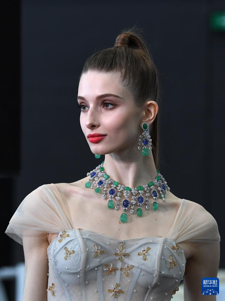 3月1日,模特在珠宝展上展示饰品。