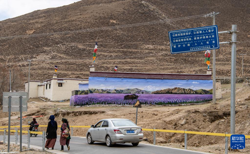 这是4月10日在拉萨市达孜区章多乡恰村拍摄的墙画。