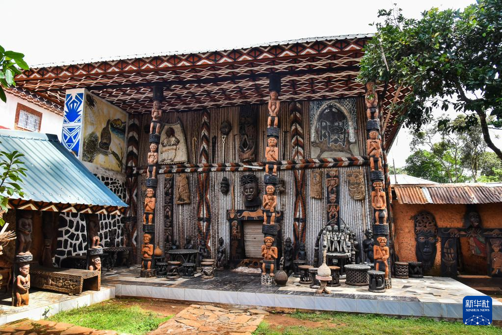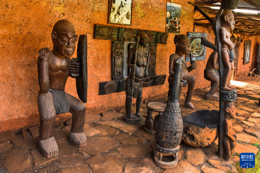 这是4月13日在喀麦隆西部大区拍摄的巴图方酋邦宫殿内的木制器物。