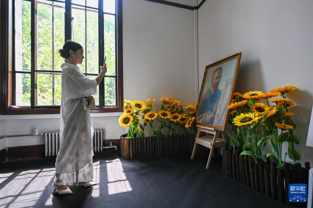 5月16日,观众在天津数字艺术博物馆“梵高的世界”全景数字艺术互动大展预展上参观。