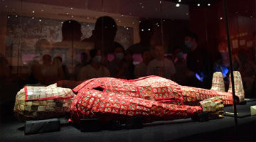 这是一张拼版照片,上图为:《逍遥津木刻枋》,现收藏于安徽博物院(新华社发,吴艳摄);下图为:5月17日拍摄的位于安徽省合肥市的逍遥津公园(无人机照片,新华社记者张端摄)。