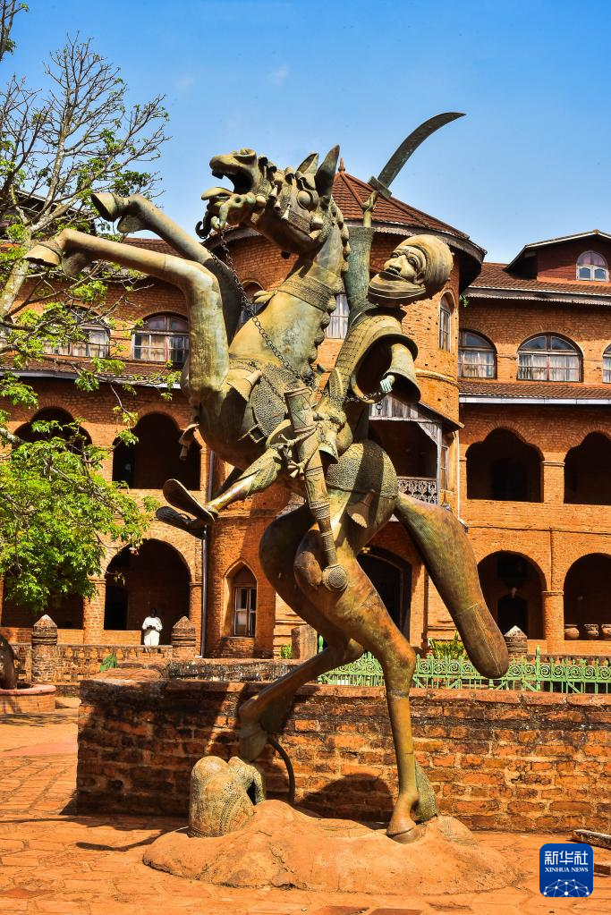 这是4月12日在喀麦隆西部大区丰班拍摄的巴蒙王宫外的骑兵塑像。
