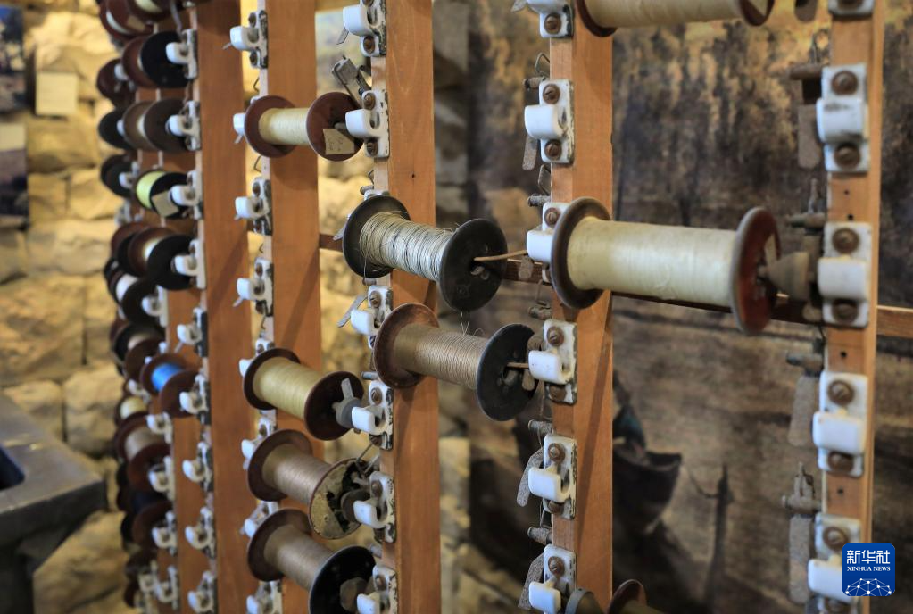 这是5月17日在黎巴嫩卜苏斯丝绸博物馆拍摄的丝线圈。