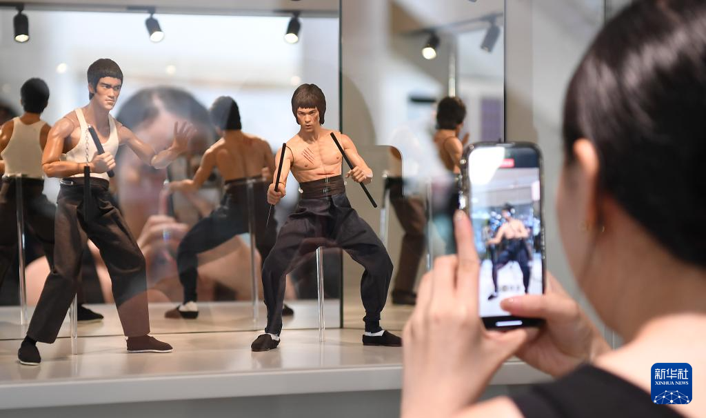 7月11日,媒体记者在香港文化博物馆“李小龙——经典永续”展览上拍摄。