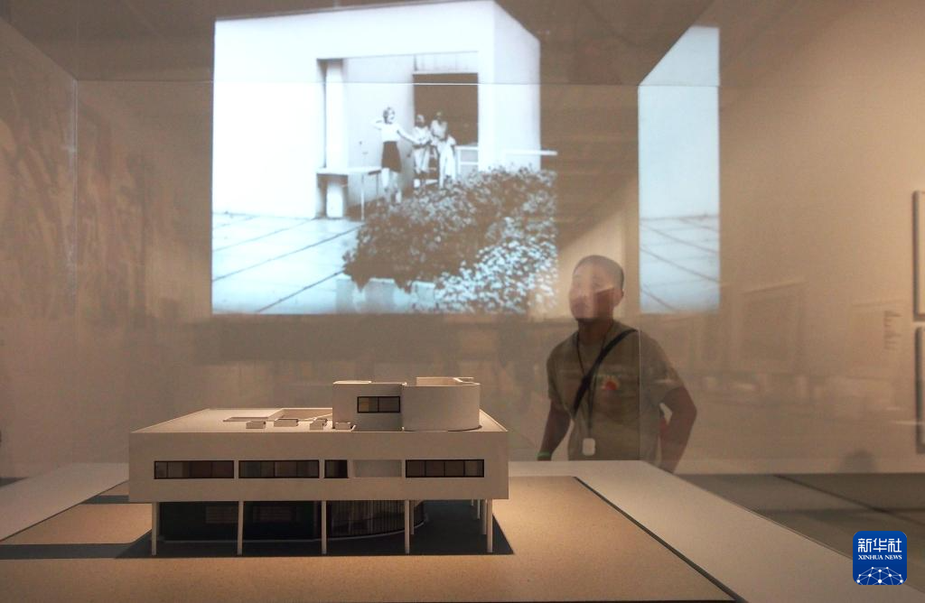 7月21日,一位观众在上海当代艺术博物馆参观“摩登巴黎”展的建筑设计展品。