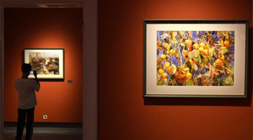 8月23日,一名游客在秦始皇兵马俑博物馆参观时高举手机拍照。
