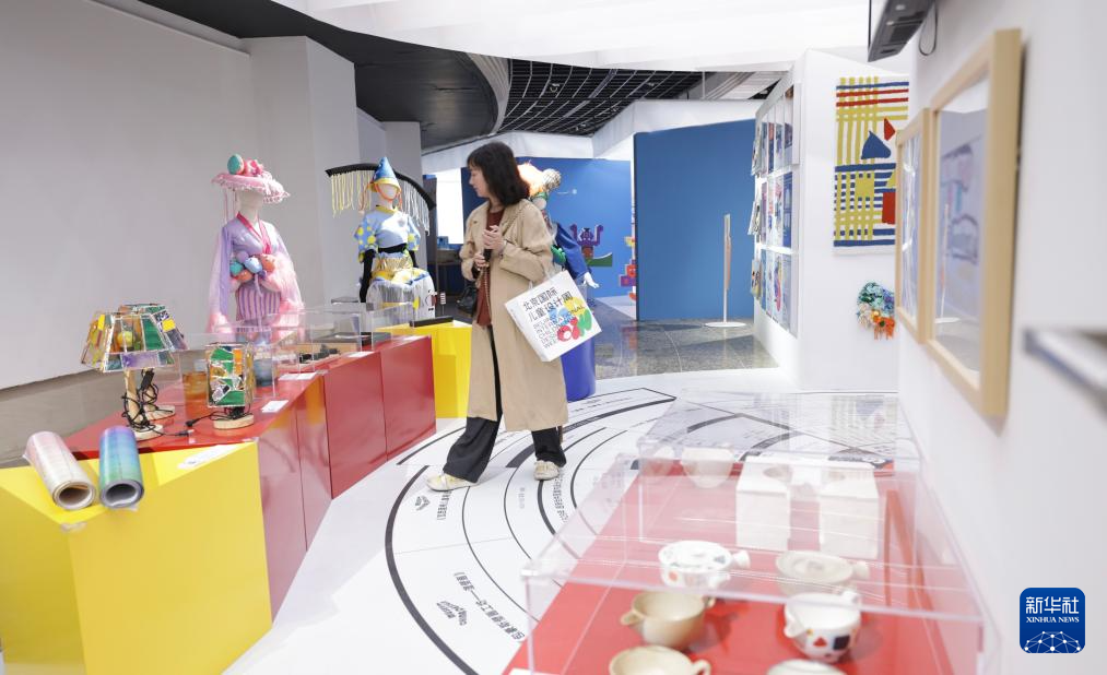 9月25日,参观者在“童思筑梦——儿童设计美育新时代”北京国际儿童设计创新体验展上观看展品。
