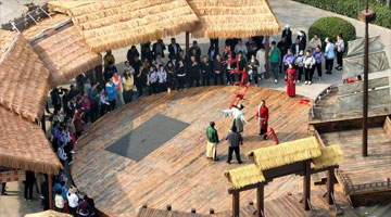 10月18日,演员在瓷博会现场演奏陶瓷乐器。
