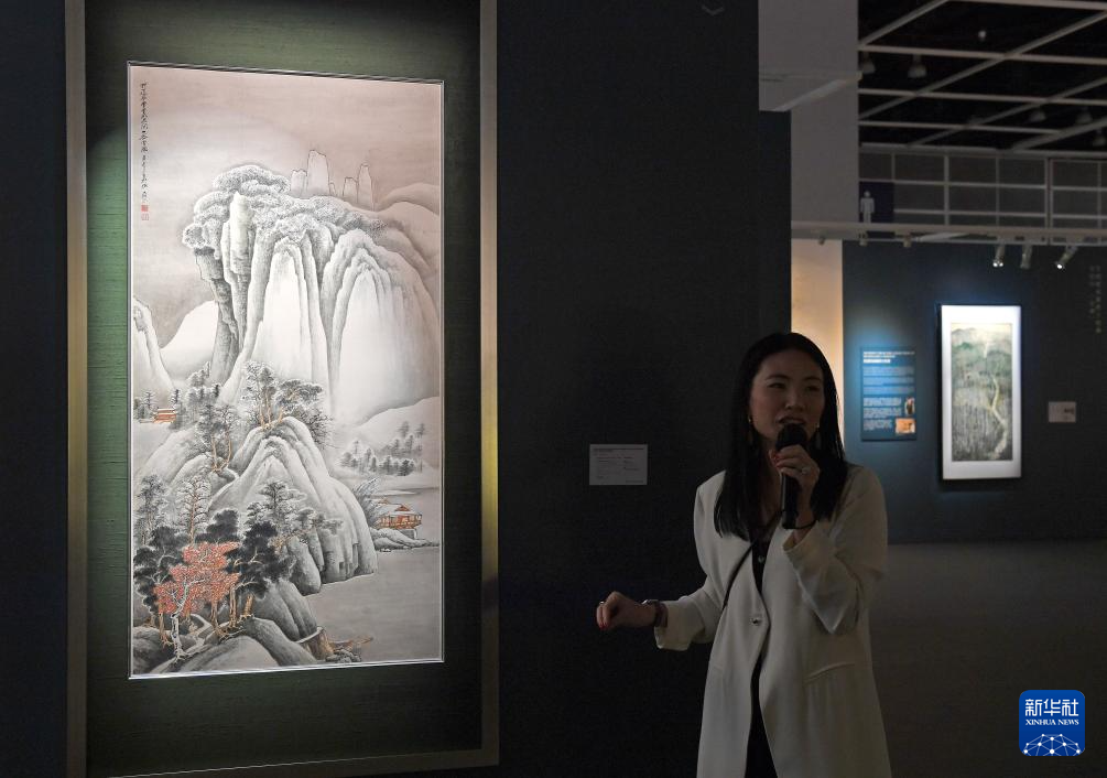11月24日,在香港会议展览中心,导赏员讲解张大千作品《关山密雪图》。