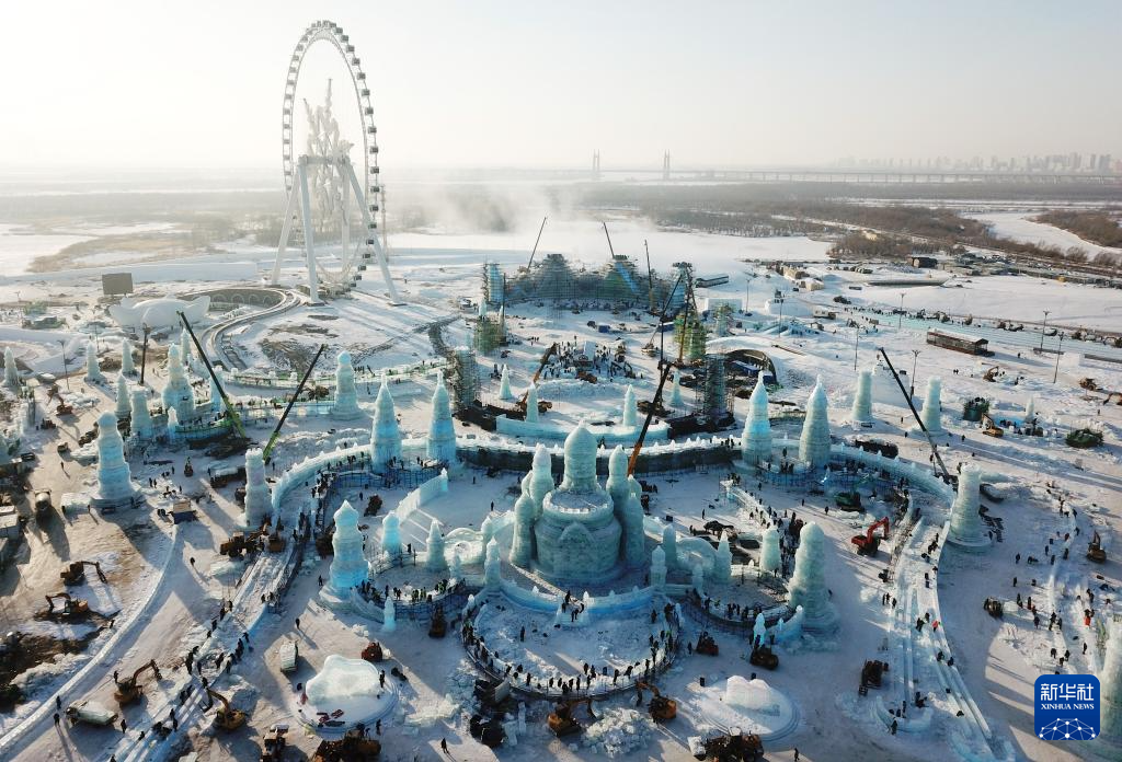 以“龙腾冰雪 逐梦亚冬”为主题的第二十五届哈尔滨冰雪大世界将于12月18日开园迎客。目前在园区内,林立的塔吊、穿梭的机械交织成一首忙碌的建设“交响曲”。本届哈尔滨冰雪大世界将使用25万立方米的冰和雪,倾力打造一个梦幻精彩的冰雪童话世界。