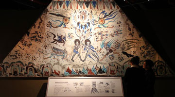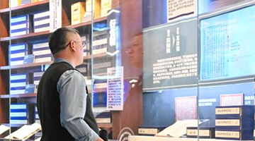 12月27日,观众在展览现场观看介绍热贡艺术的书籍资料。