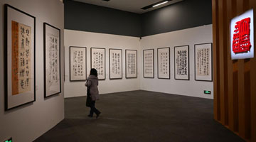 展览上展出了绘制传统热贡唐卡所需要的各种珍贵矿物颜料标本(12月27日摄)。