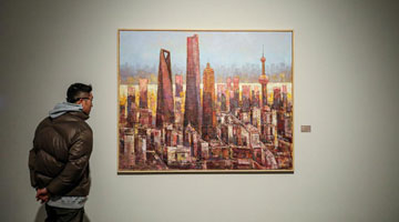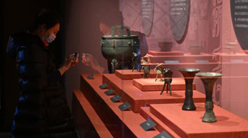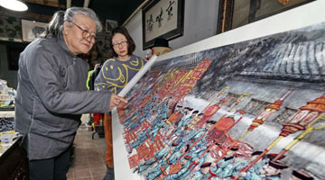 乘客在磁器口地铁站内观看“红楼梦”壁画(1月20日摄)。
