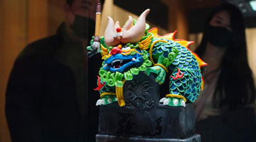 这是新宫地铁站内展示古都历史的屋顶装饰(1月20日摄)。