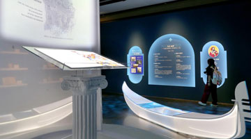 7月15日,新疆库车市龟兹魏晋古墓遗址博物馆通过声光电等数字化手段,让观众更直观了解文物。