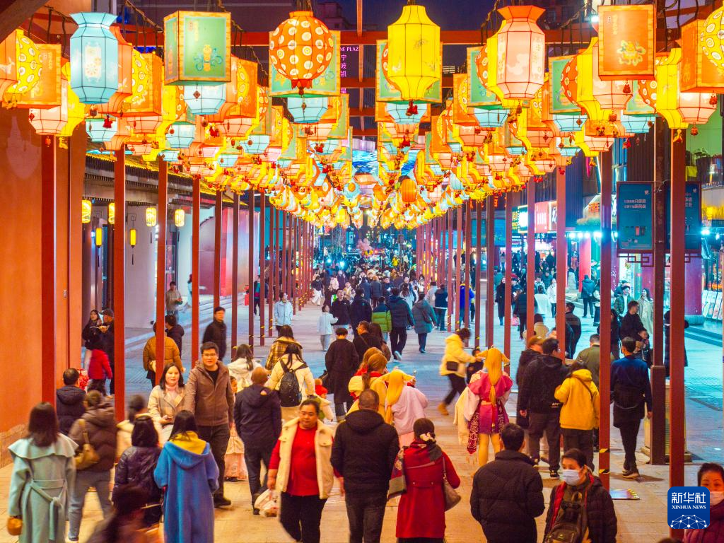 1月18日晚,河南洛阳2025年隋唐河洛文化庙会暨新春灯会试亮灯,吸引市民游客观赏。