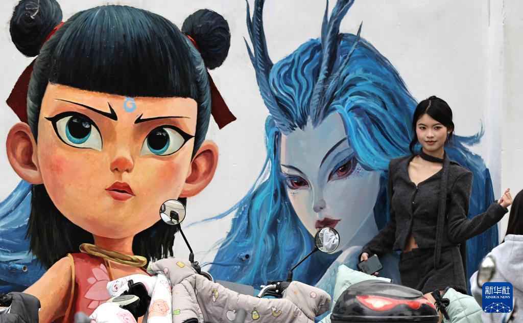 近日,随着《哪吒之魔童闹海》电影热映,各地哪吒主题墙绘吸引人们打卡拍照。