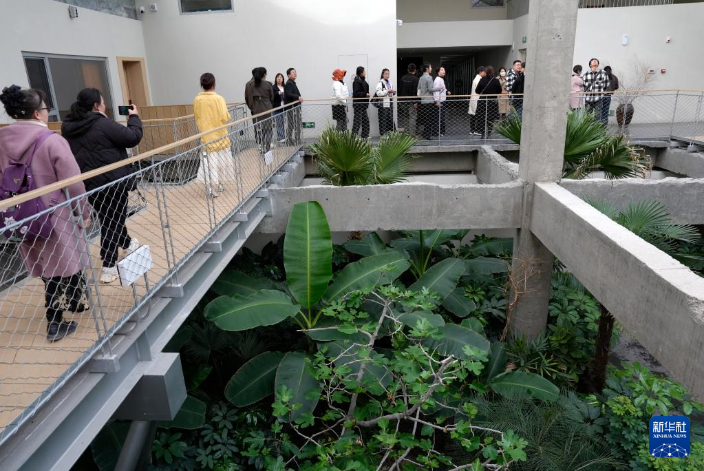 3月26日,参观者在大乐之野——夏多兰民宿观赏室内温室。