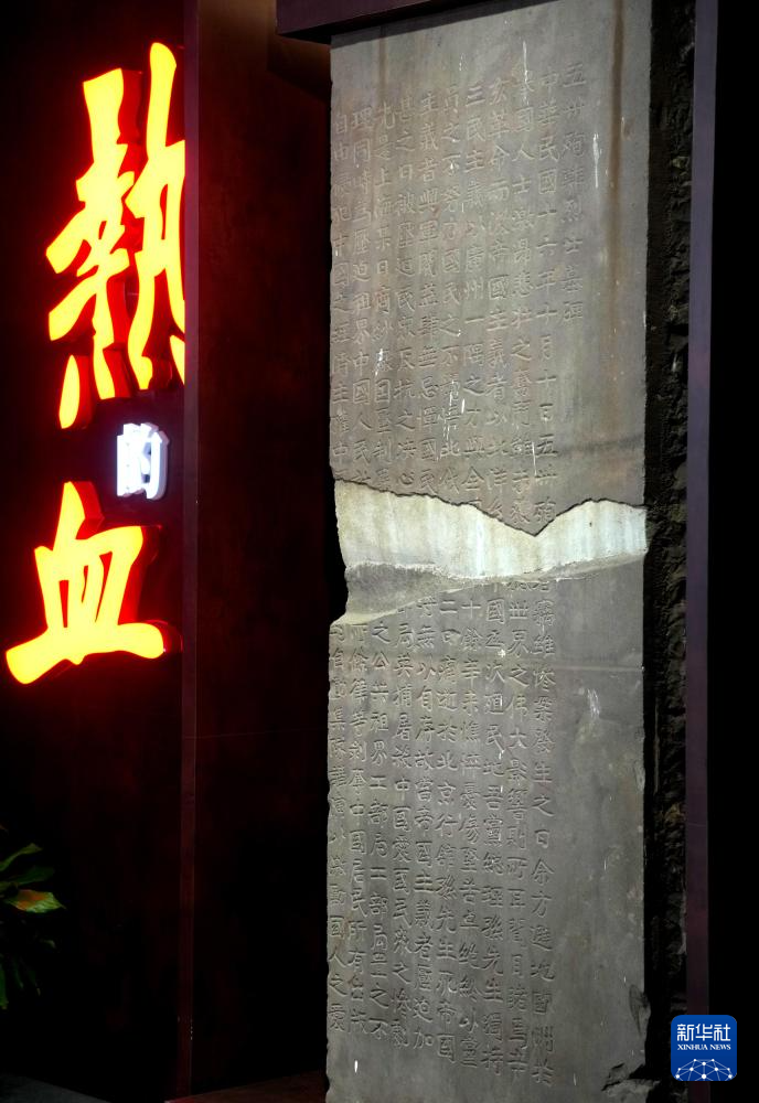 这是3月31日在展览上拍摄的五卅殉难烈士墓碑(国家一级文物)。