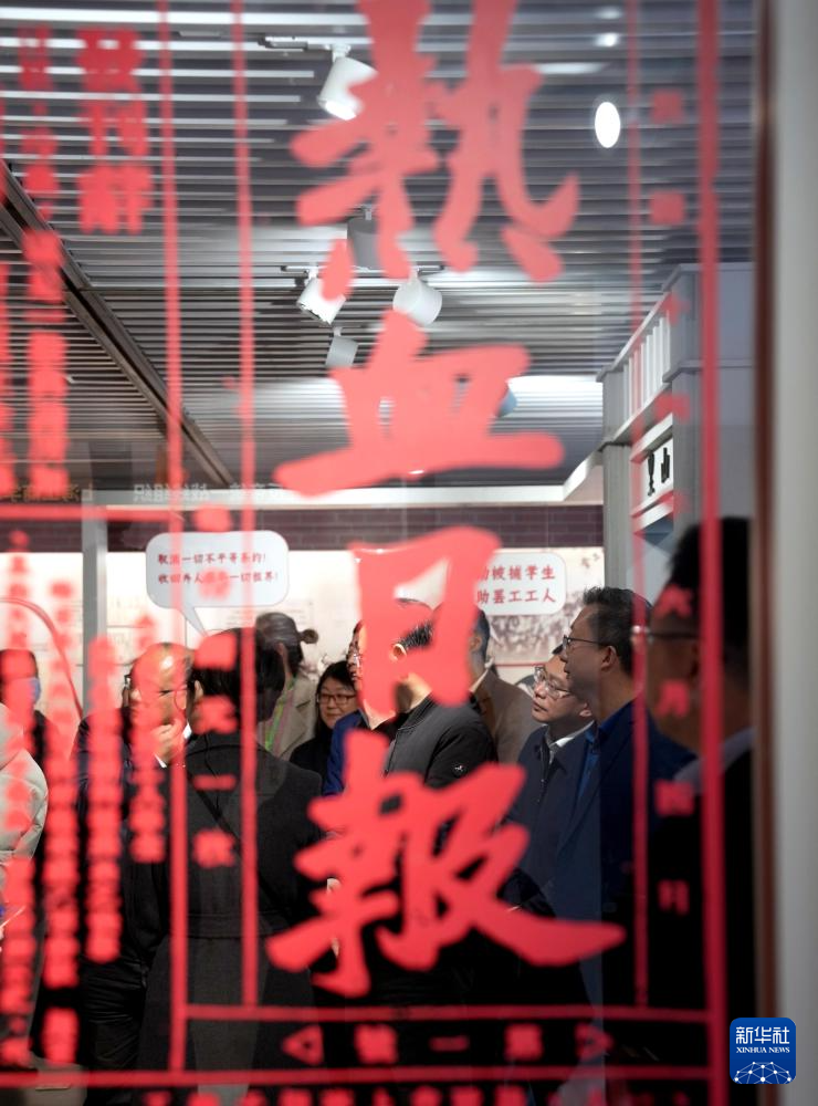这是3月31日在展览上拍摄的中国共产党创办的第一份日报《热血日报》(国家一级文物)。