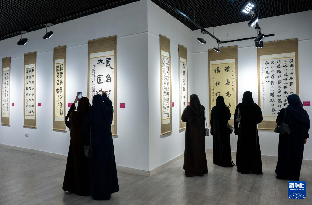 4月24日,人们参观卡塔尔多哈卡塔拉文化村举行的中卡书法交流展。