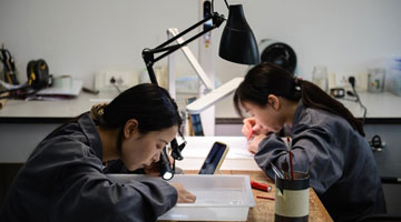 5月13日,观众在“石韵天成——中国观赏石艺术展”上欣赏展出的观赏石。