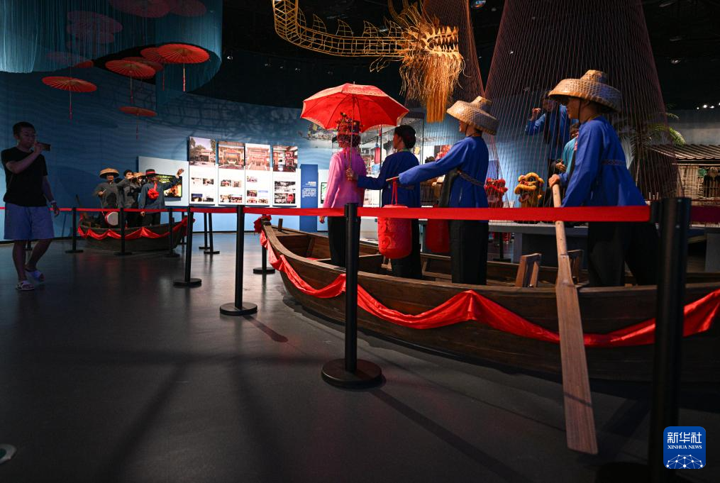 5月13日在海南疍家博物馆拍摄的展示疍家人举行水上婚礼的场景。