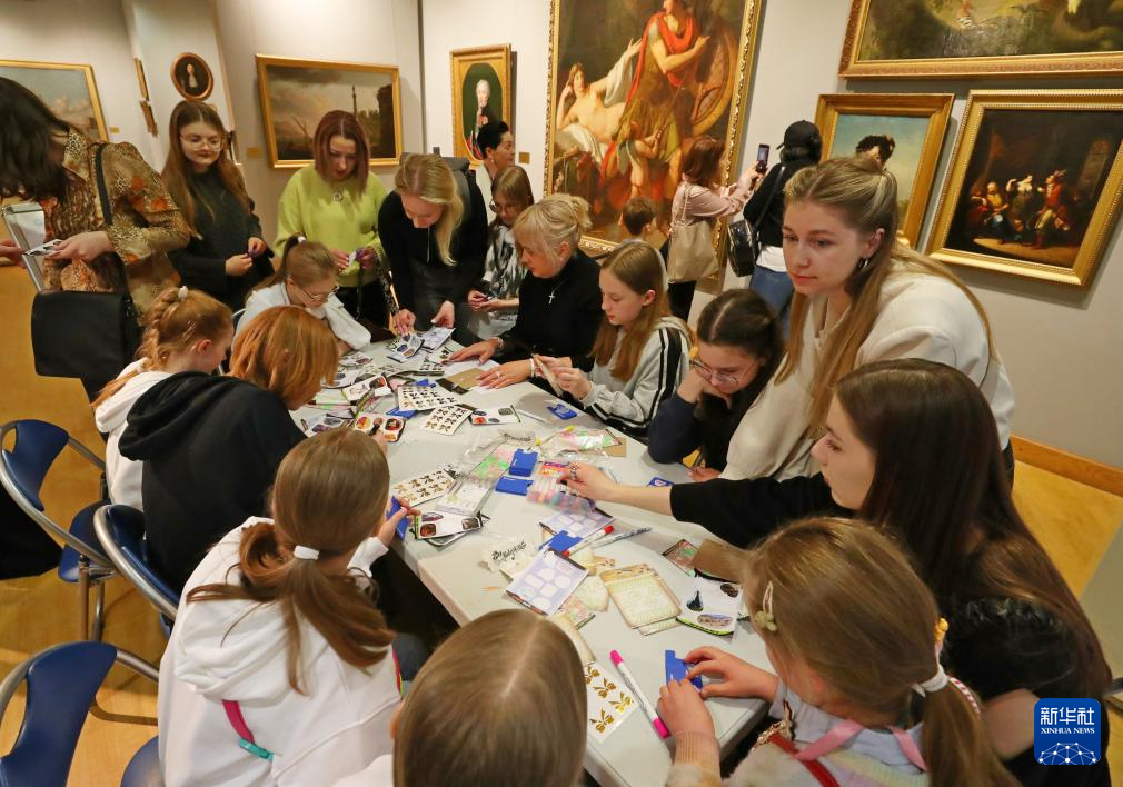 5月17日,孩子们在白俄罗斯首都明斯克的白俄罗斯国家美术馆参加手工体验活动。