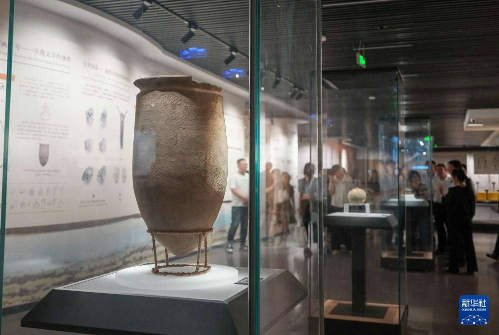 这是5月20日在大汶口遗址博物馆拍摄的刻花陶罐。