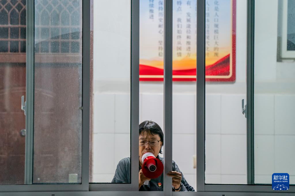 2024年高考首日,张桂梅拿着小喇叭叮嘱将要奔赴考场的考生带好考试用品(2024年6月7日摄)。这个电喇叭被国家博物馆收藏。