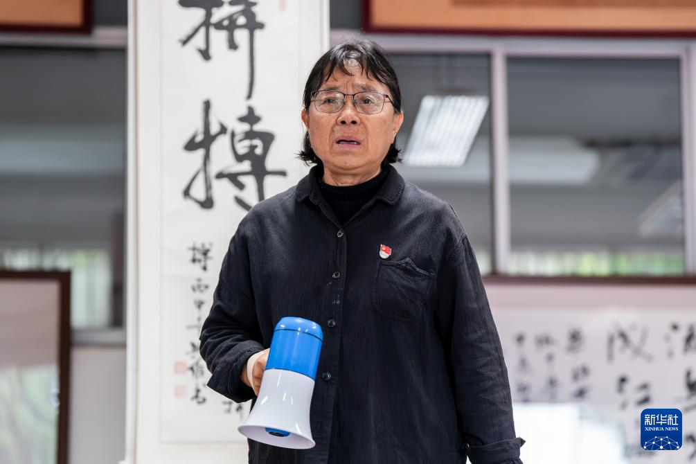 5月27日,张桂梅拿着新的小喇叭向学生喊话。