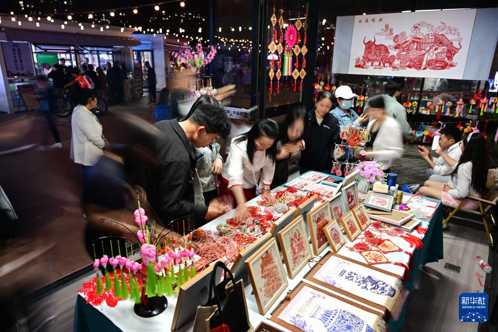 5月28日,在“西海2261·河湟文化大集”开集仪式上,市民购买剪纸文创产品。