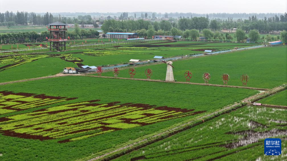 近日,在位于宁夏银川市贺兰县的稻渔空间乡村生态观光园里,题材多样的巨幅稻田画进入最佳观赏期,吸引不少游客前来观赏。