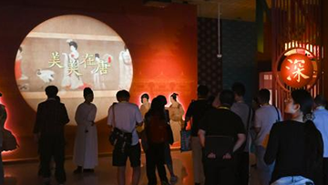 6月29日,市民在北京798艺术区参观数字影像艺术作品。