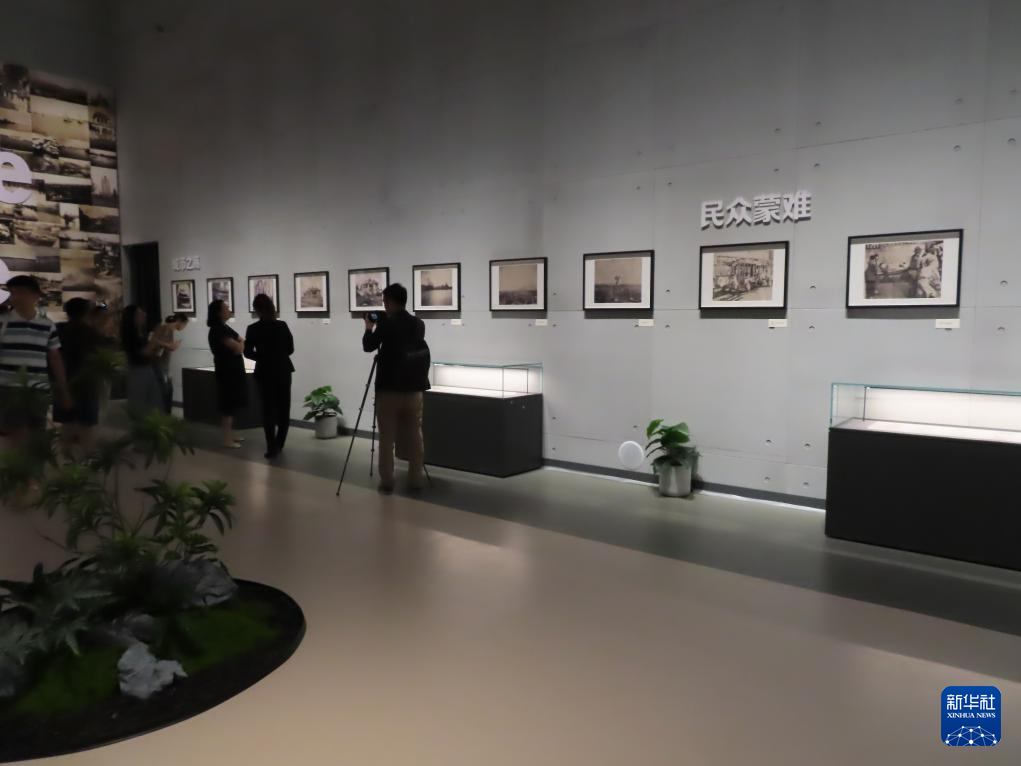 9月2日,在上海淞沪抗战纪念馆,媒体记者在照片展出现场拍摄。新华社记者 许晓青 摄