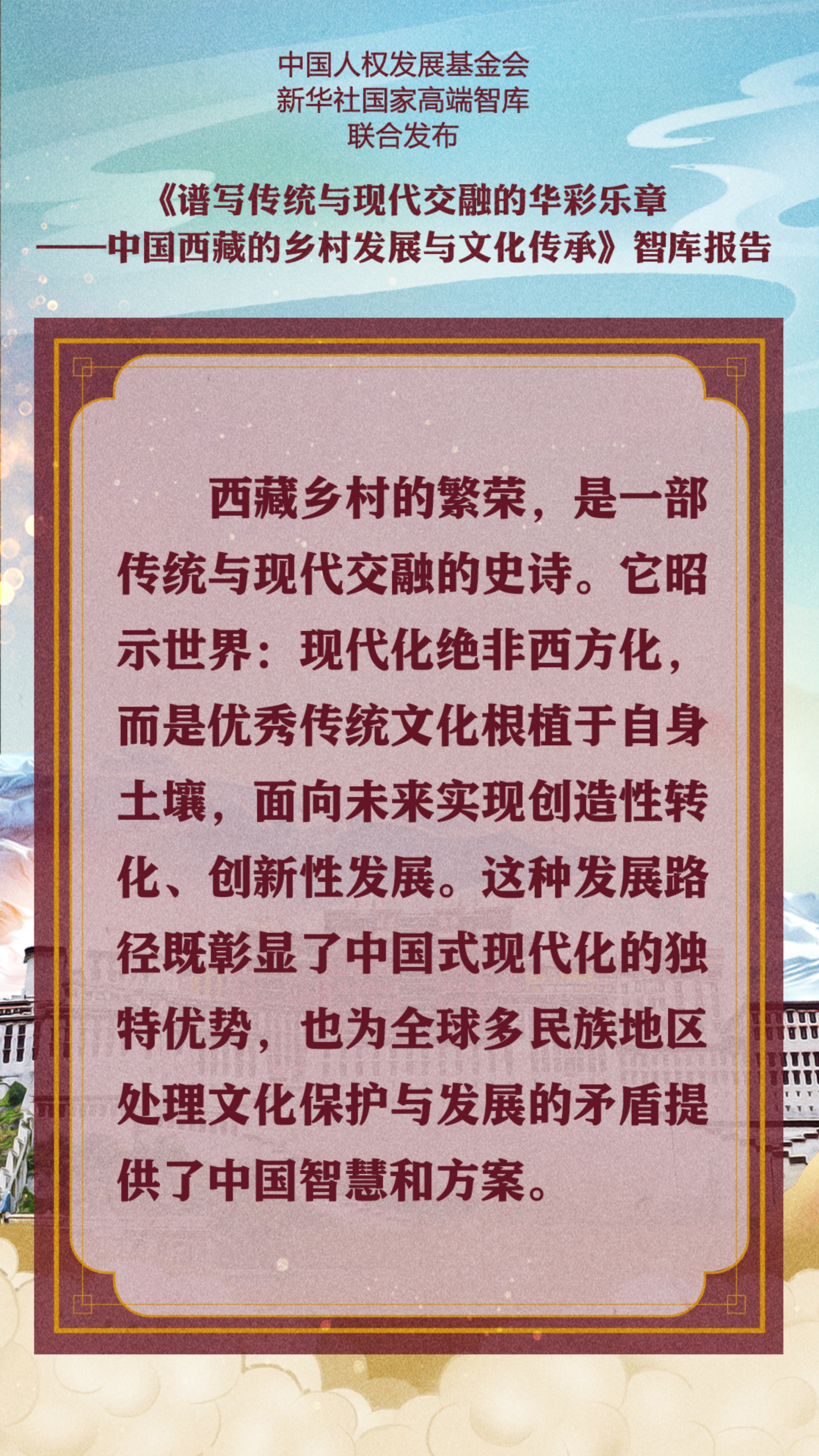 中国人权发展基金会、新华社国家高端智库10月16日在北京联合发布中英文智库报告《谱写传统与现代交融的华彩乐章——中国西藏的乡村发展与文化传承》。