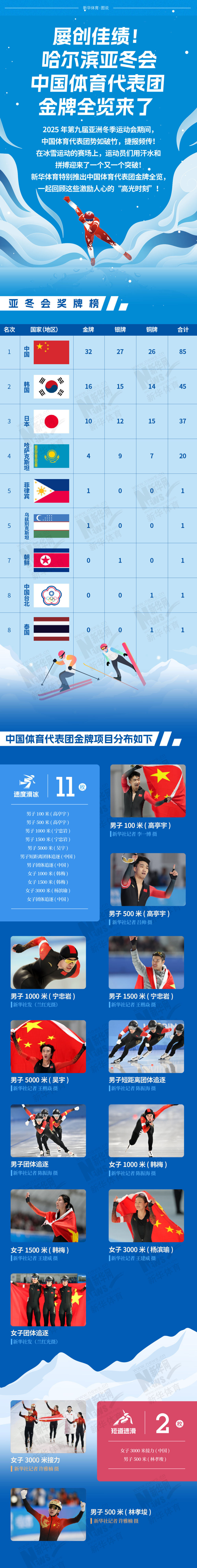 长图|屡创佳绩!哈尔滨亚冬会中国体育代表团金牌全览来了!-新华网