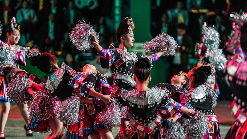 演员在大地流彩·2025年全国和美乡村篮球大赛(村BA)启动仪式上进行歌舞表演。新华社记者 陶亮 摄