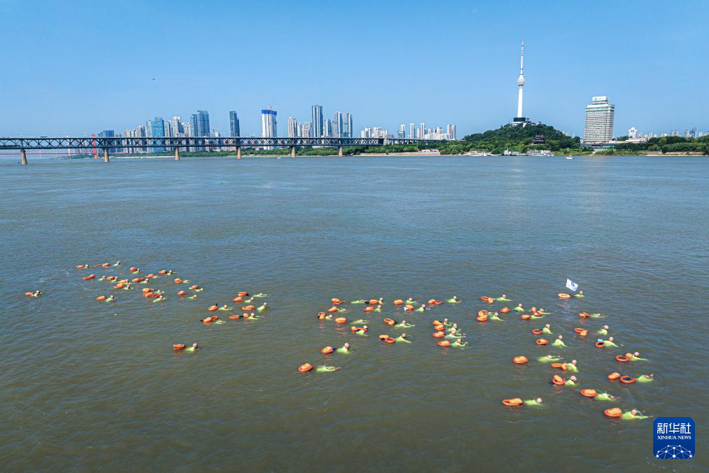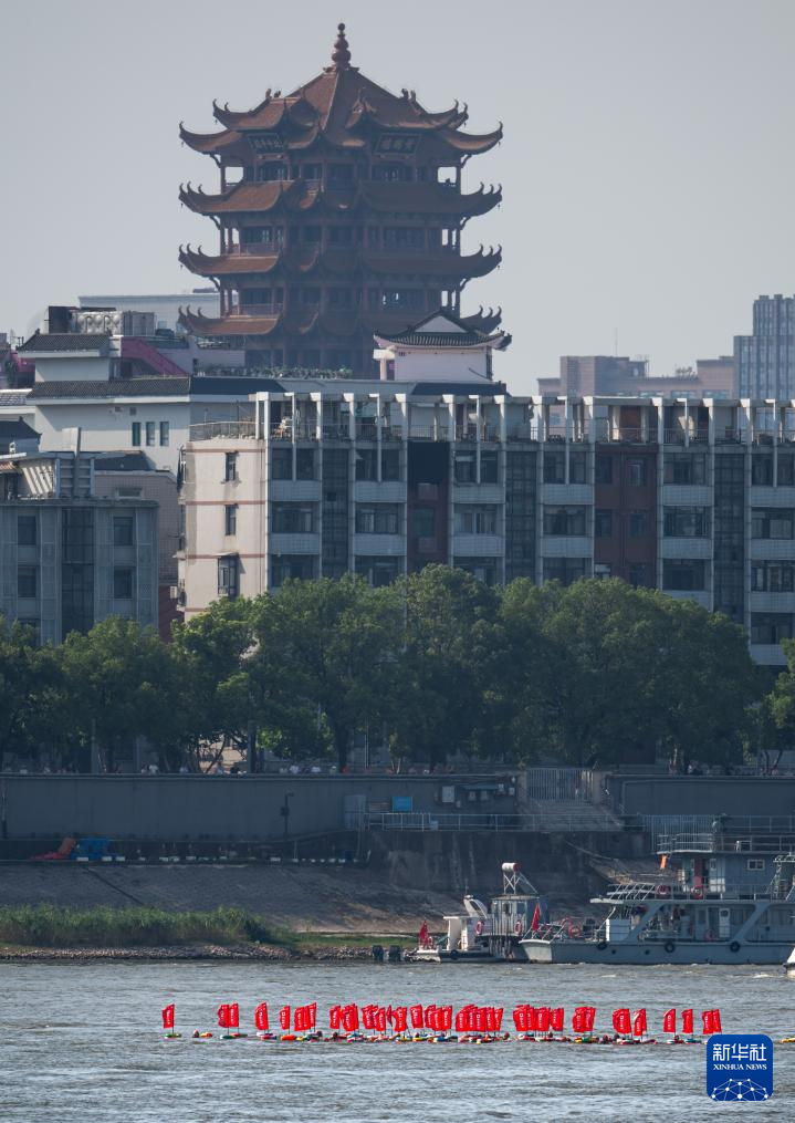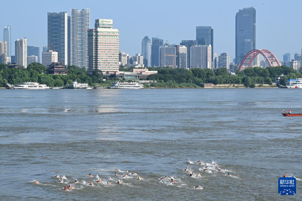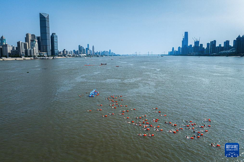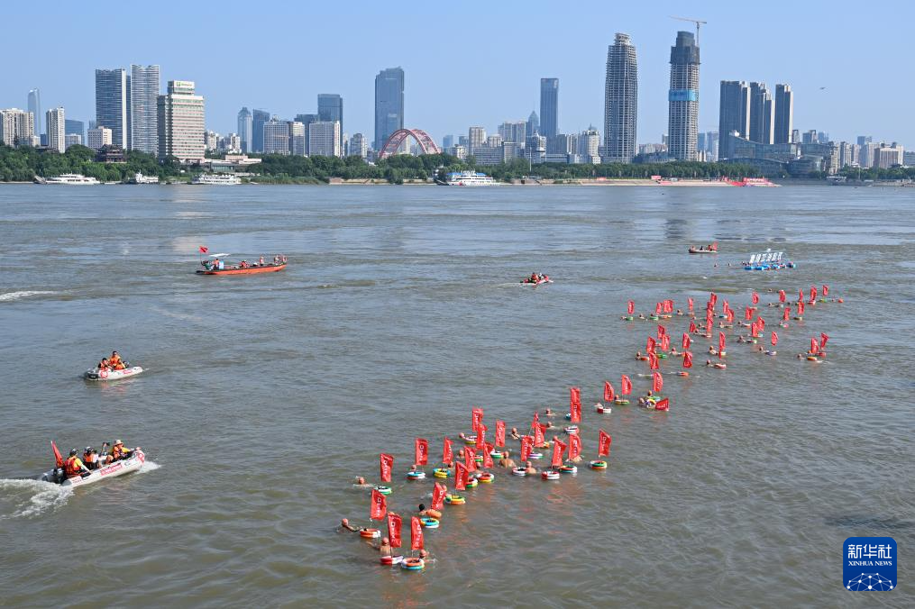 7月16日,选手们横渡长江。新华社记者 杜子璇 摄