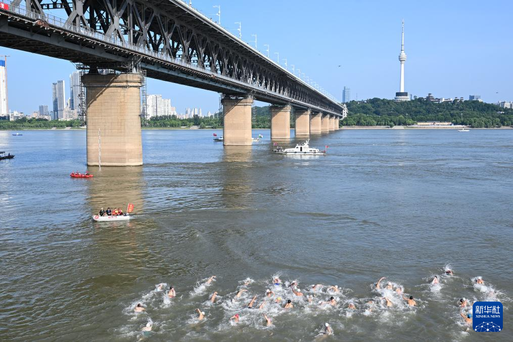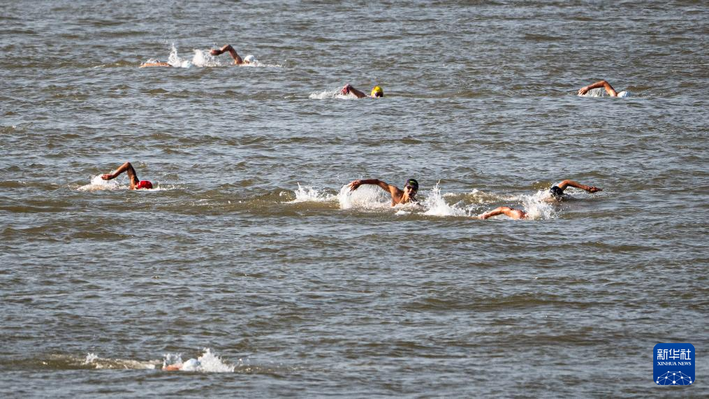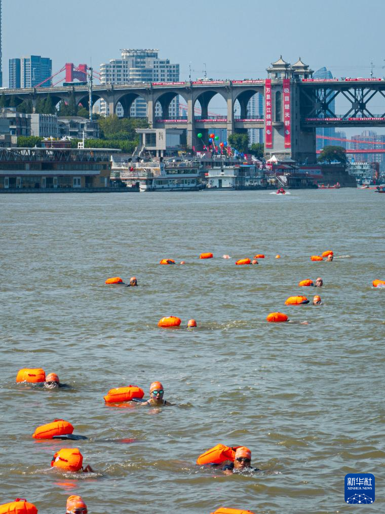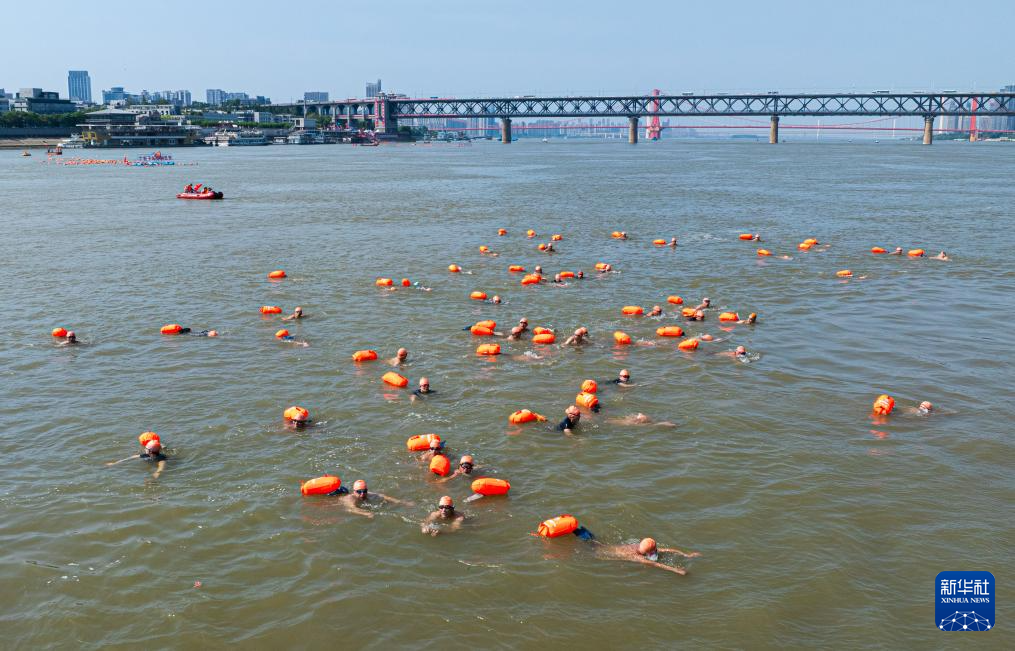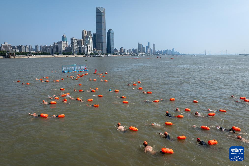 7月16日,选手们横渡长江。新华社记者 杜子璇 摄