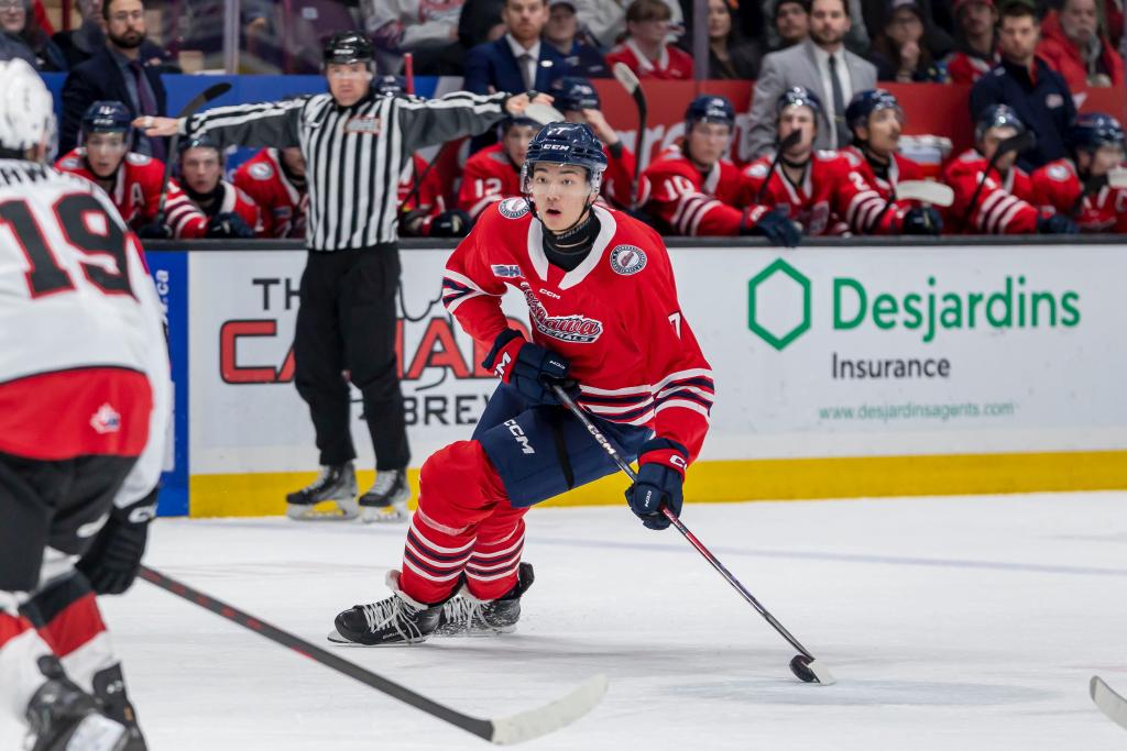 17岁的王浩西身高已经达到1米98,出色的身体素质让他在冰上对抗时更具优势。高大的身形与出色的滑行能力相结合,使他在众多青年后卫中脱颖而出,引起不少球探和媒体的关注。在NHL官网发布的2025年NHL选秀排名前十后卫的介绍中,王浩西位列第十。