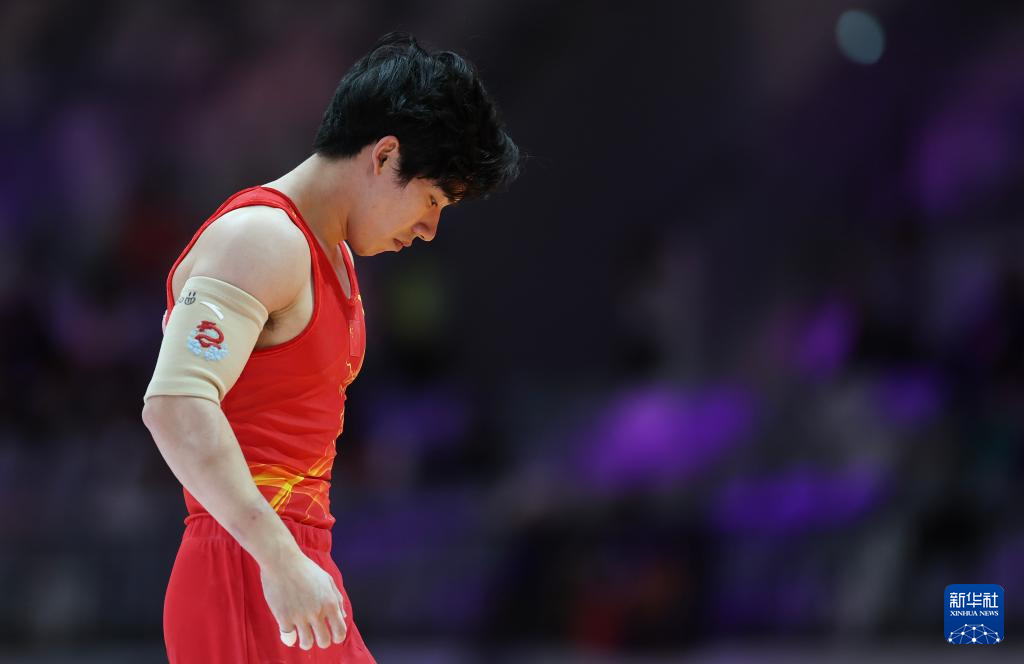 10月22日,张博恒在男子个人全能决赛双杠项目比赛后。