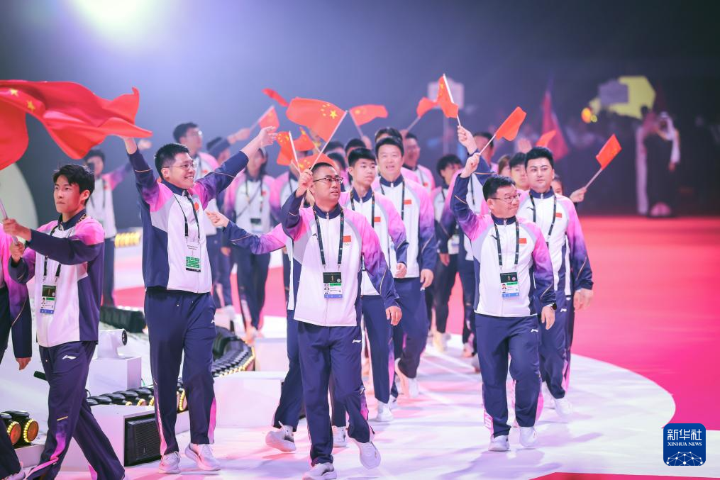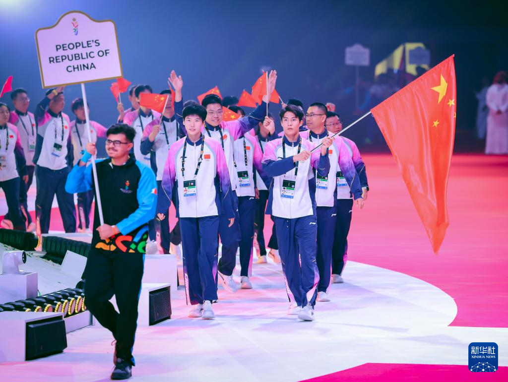 当日,第三届亚洲青年运动会开幕式在巴林国际会展中心举行。